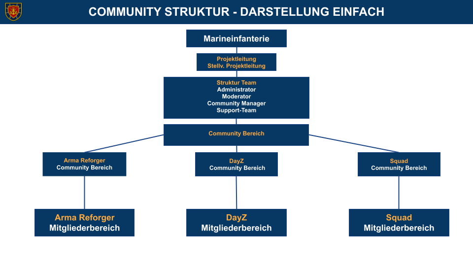 Die Marineinfanterie ist klar strukturiert, um einen reibungslosen Ablauf, transparente Zuständigkeiten und eine angenehme Community für alle Mitglieder zu gewährleisten. Unsere Struktur verbindet Organisation, Teamplay und Offenheit für neue Spieler.
