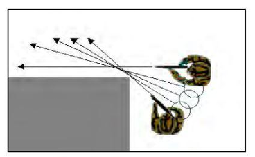 - Ecken immer so prüfen, dass möglichst wenig vom Körper sichtbar ist, liegend gelehnt